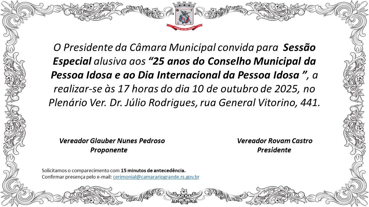 Convite/ Sessão Especial "25 Anos do Conselho Municipal da Pessoa Idosa"