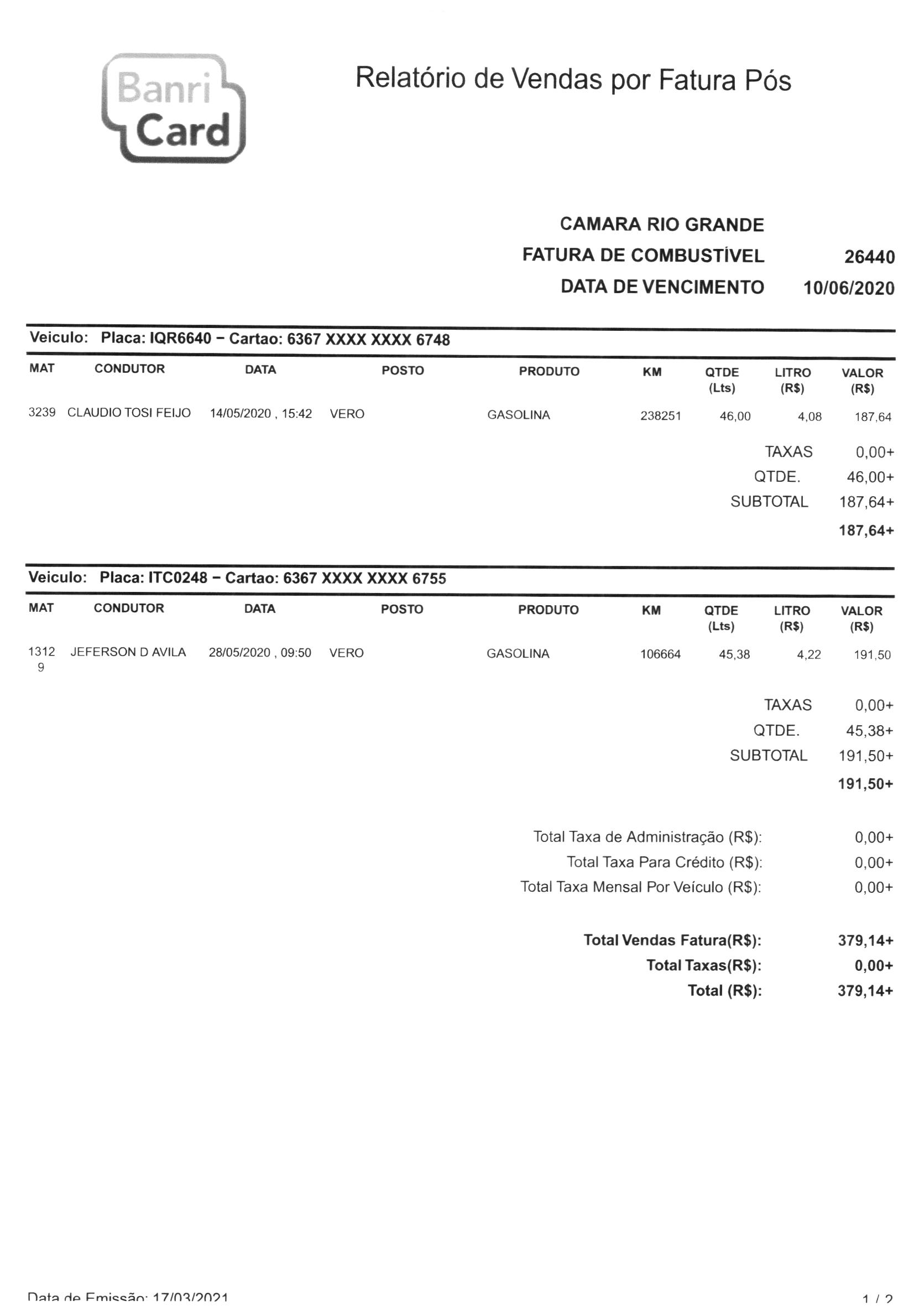 Vencimento em junho (1ª nota)