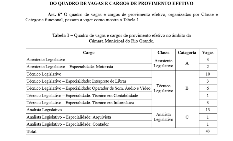 Quadro de Vagas e Cargos de Provimento Efetivo